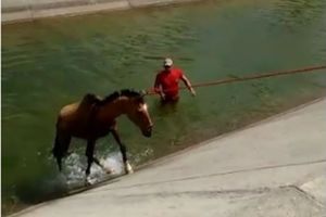 Um cavalo foi resgatado, na manhã desta quinta-feira (21), por volta das 11h, depois de cair em um trecho do Canal do Sertão, próximo ao bairro Área Verde, em Delmiro Gouveia.
