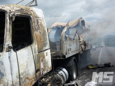 acionada, controlou o fogaréu, mas a carreta já tinha sido destruída.