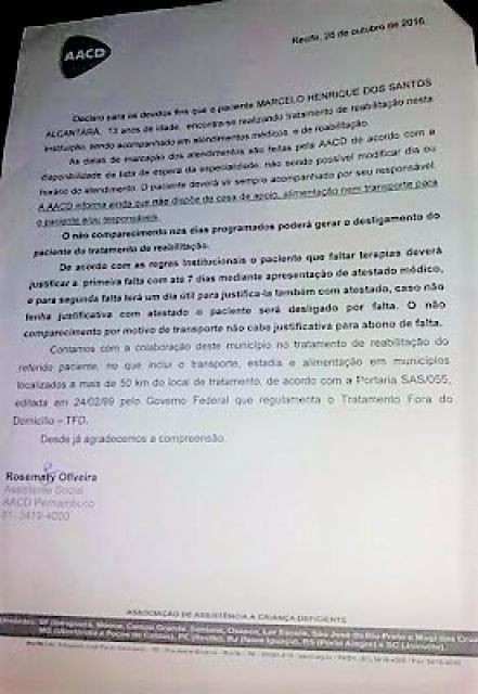 E é com esse mesmo comunicado e outros documentos, registros de atendimento e laudos médicos que a mãe das crianças deve ir à rádio e ao Ministério Público, nesta terça-feira (13), em Santana do Ipanema em busca dos direitos dos seus filhos, justamente no dia em que deveria está em Recife com seus filhos em tratamento.